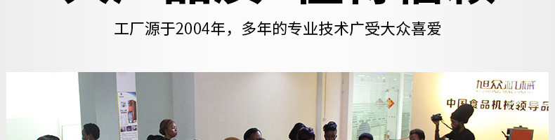 廣州旭眾食品機(jī)械有限公司是一家集科研開發(fā),生產(chǎn)設(shè)計(jì),營銷服務(wù)為一體的現(xiàn)代化生產(chǎn)企業(yè)?,F(xiàn)代化生產(chǎn)車間,精湛制造技術(shù),所產(chǎn)機(jī)械歷經(jīng)市場重重考驗(yàn),不斷贏得海內(nèi)外客戶的贊譽(yù)。