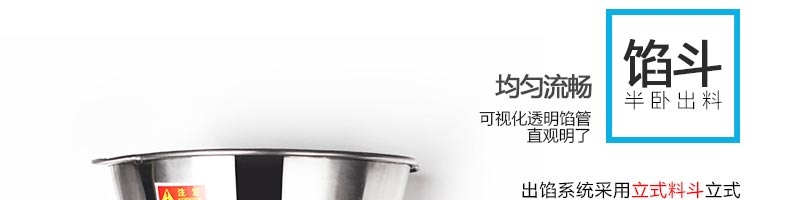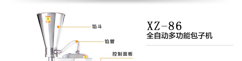 名稱XZ-86型全自動(dòng)包子機(jī) 電源220/380V(見機(jī)器名牌) 功率2.4kw 產(chǎn)量0-3600個(gè)/小時(shí) 尺寸1600*720*1600mm(包括輸送帶) 重量350kg 規(guī)格20-150克/個(gè) 其他