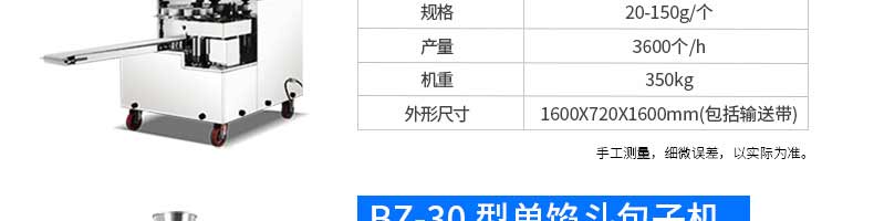 名稱290IIAS卷面式包子機 電源220/380V 功率2.5kw 產(chǎn)量0-3600個/h 尺寸3280×1500×1420mm 重量480KG 規(guī)格 其他