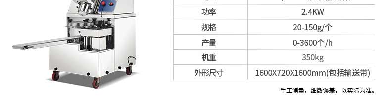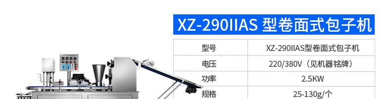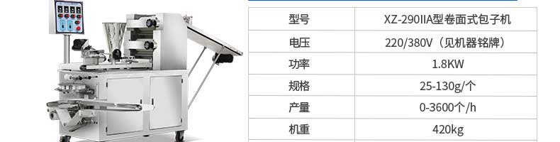 名稱XZ-290AS智能型卷面包子機(jī) 電源220/380v 功率4.05kw 產(chǎn)量0-3600個/h 尺寸3280*1500*1420mm 重量480kg 規(guī)格 其他