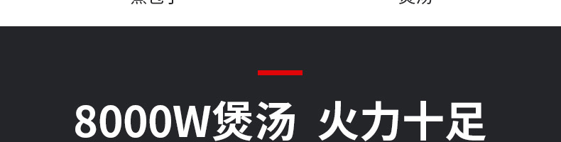 八千瓦平爐(磁控) XZ-KAM8C,八檔磁控,滿足各種烹飪。蒸煮燉煲炒,無明火模式。不同食材專屬火力、大功率、高效率。8000W煲湯火力十足具有聚能技術(shù),大面積均速加熱,輕松制作美食。