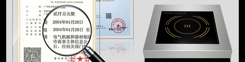 臺(tái)式平爐旋鈕XZ-DSK2X1,商用智能電磁爐3500W大火力、節(jié)能省電、聚能加熱。您需要一臺(tái)經(jīng)久耐用的好電磁爐不銹鋼材質(zhì)加厚不銹鋼架構(gòu),穩(wěn)定耐用,不易生銹,耐腐蝕,易清潔,干凈省事。