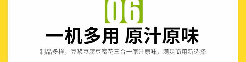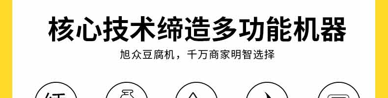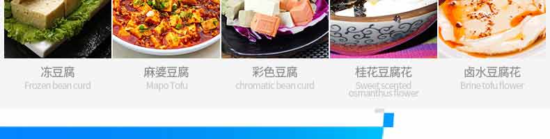 XZ-60智能豆腐機(jī),一機(jī)多用:可生產(chǎn)豆腐系列產(chǎn)品:?jiǎn)紊?,老)豆腐、多彩?腐、單色豆腐皮、多色豆腐皮、彩色豆腐干、豆?jié){、豆花等豆制品制作,還可以與其他設(shè)備和工藝配套生 產(chǎn)更多的豆制品。