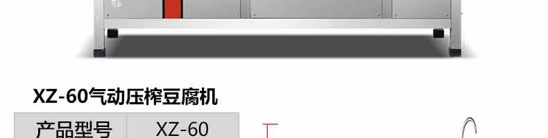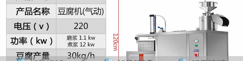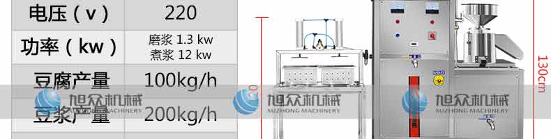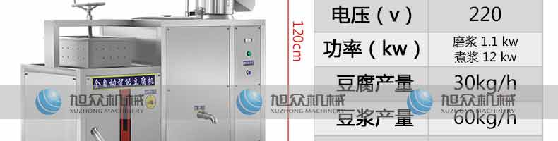 名稱XZ-60智能豆腐機(jī) 電源220V 功率1.1kw 產(chǎn)量豆?jié){產(chǎn)量120斤/h;豆腐產(chǎn)量60斤/h 尺寸600/1300*1200mm 重量 規(guī)格 其他