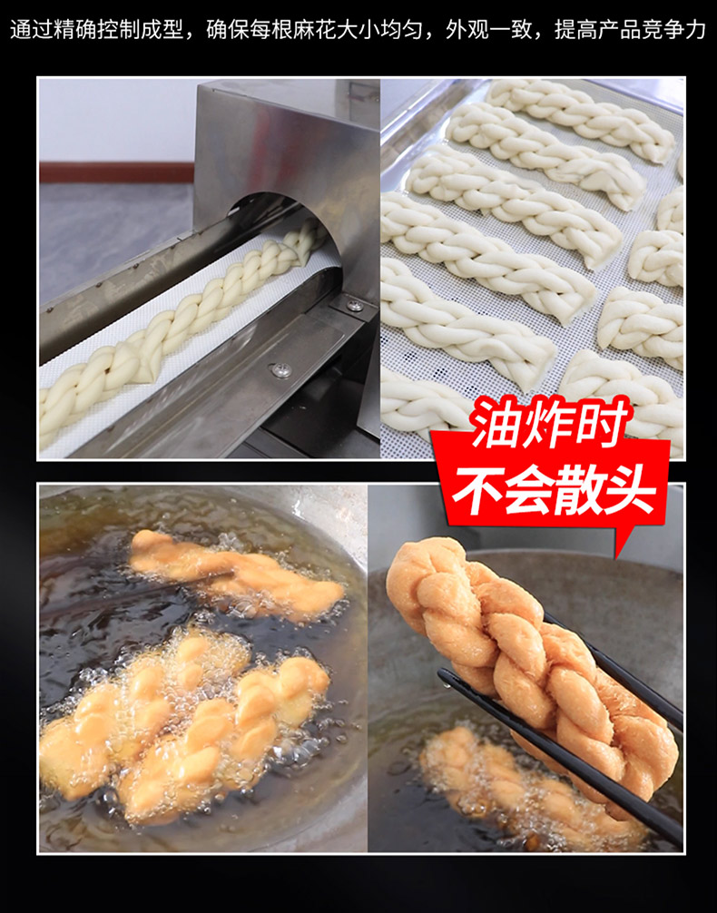 XZ-MH-200麻花機,技術支持、贈送配方、支持定制,1小時加工60斤麻花。切段均勺、且不粘面,麻花長短可調??赏ㄟ^調節(jié)切刀時間、控制麻花的長度。通過精確控制成型,確保每根麻花大小均勻,外觀一致,提高產品競爭力。
