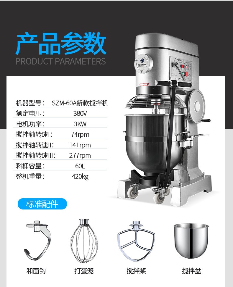 多功能攪拌和面機,創(chuàng)業(yè)神器,開創(chuàng)廚房新時代。多功能高效率,讓您省心省力又省事。360行星軌跡攪打系統(tǒng),攪拌均勻保持口感。3000W大功率強勁電機,穩(wěn)定高效使用長久。