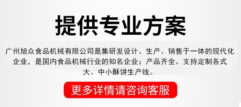 廣州旭眾食品機(jī)械有限公司是一家集科研開發(fā),生產(chǎn)設(shè)計(jì),營(yíng)銷服務(wù)為一體的現(xiàn)代化生產(chǎn)企業(yè)?,F(xiàn)代化生產(chǎn)車間,精湛制造技術(shù),所產(chǎn)機(jī)械歷經(jīng)市場(chǎng)重重考驗(yàn),不斷贏得海內(nèi)外客戶的贊譽(yù)。