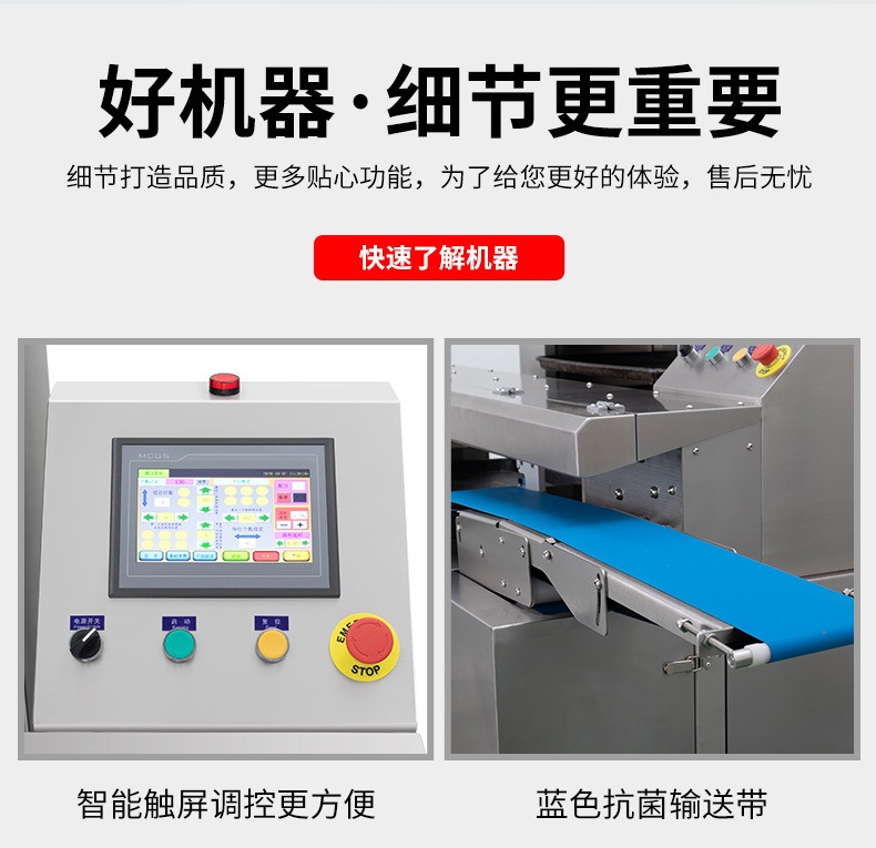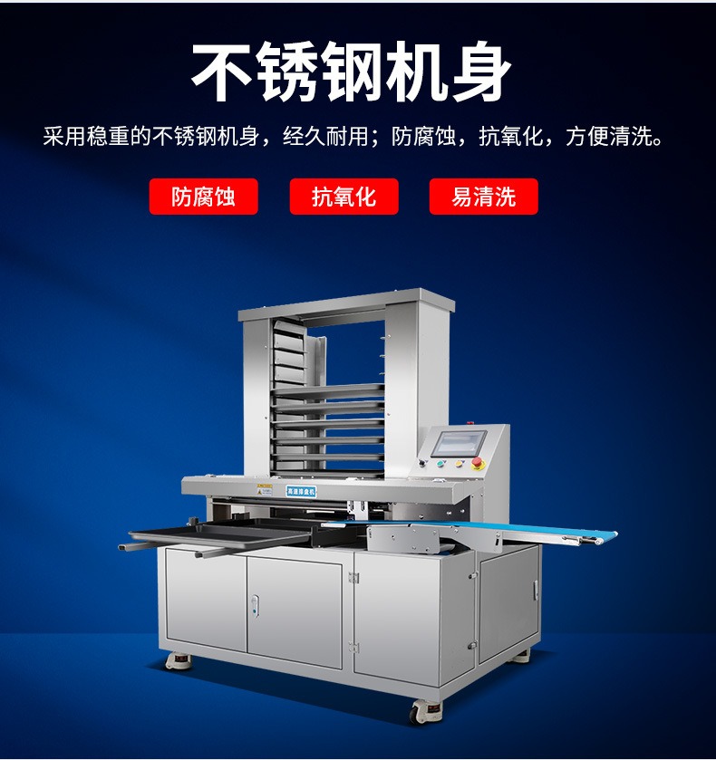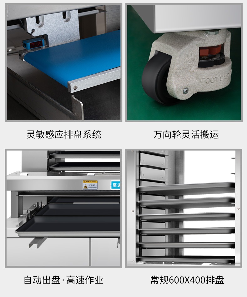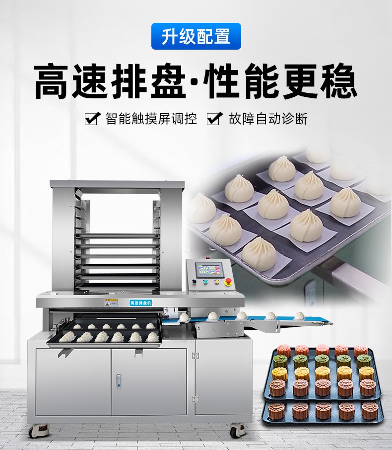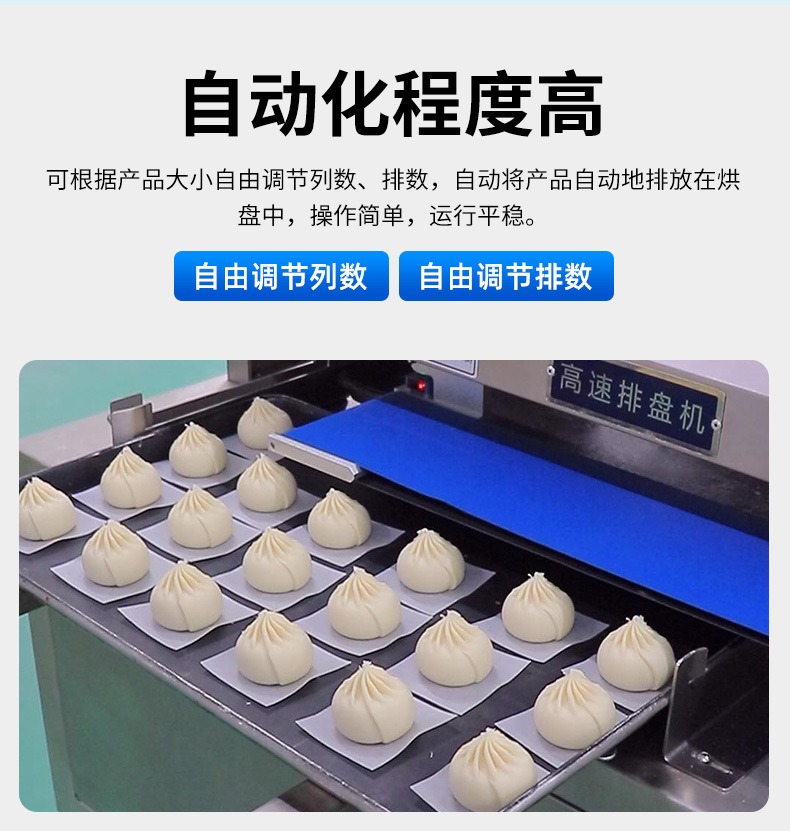 多功能商用高速排盤機,自動化程度高,可根據產品大小自由調節(jié)列數、排數,自動將產品自動地排放在烘盤中,操作簡單,運行平穩(wěn)。智能觸屏面板??刂葡到y(tǒng)由三菱PLC和進口觸摸屏組成,操作簡單方便。具有故障自動診斷,一目了然。