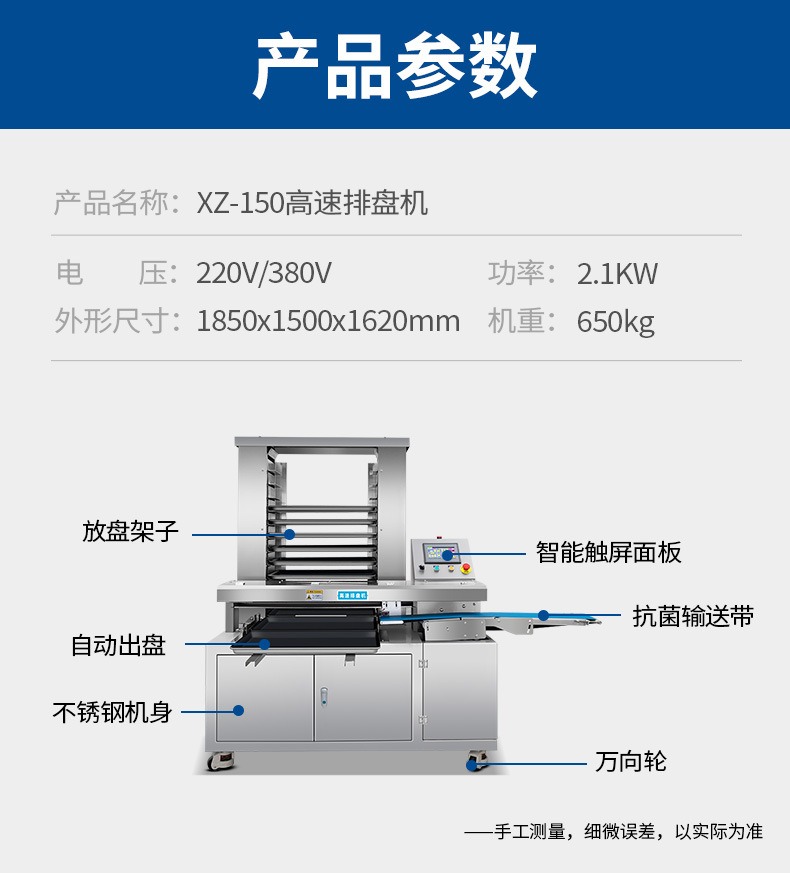名稱多功能商用高速排盤機 電源220V/380V 功率2.1KW 產量 尺寸1850x1500x1620mm 重量650kg 規(guī)格 其他