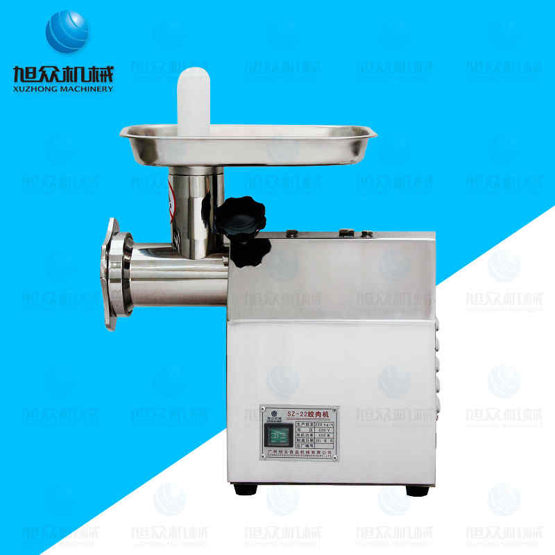 SZ-22 電動(dòng)絞肉機(jī),電動(dòng)絞肉機(jī)的??字睆綖?、8mm,本機(jī)優(yōu)點(diǎn)具有電耐用、方便快捷、結(jié)構(gòu)緊湊、外形美觀、操作方便、效率高、耗電少、清潔保養(yǎng)容易、安全衛(wèi)生等優(yōu)點(diǎn)。采用全封閉齒輪傳動(dòng),結(jié)構(gòu)緊湊,運(yùn)轉(zhuǎn)平穩(wěn),工作可靠,且維修方便;絞肉機(jī)頭及接觸食品的零部件都采用不銹鋼制造,安全無污染;機(jī)殼線條流暢,沒有可污的縫隙及無傷害操作者的銳邊,易于清潔。