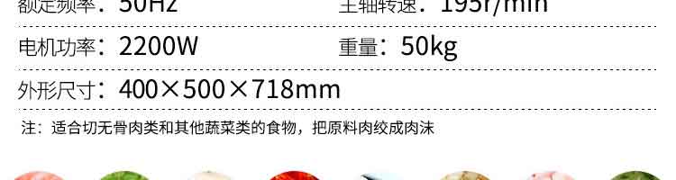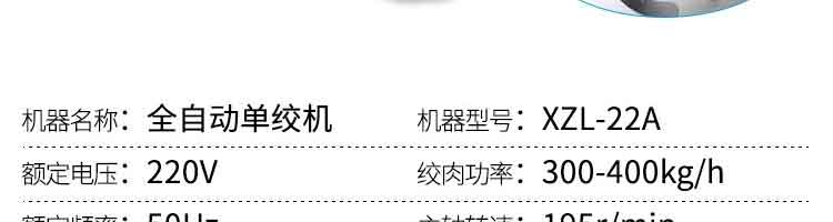名稱XZ-7絞切機(jī) 電源 功率2200W 產(chǎn)量300-400kg/H 尺寸400*500*718MM 重量50kg 規(guī)格 其他