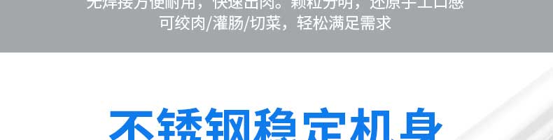 XZL-32A絞肉機(jī),快速絞肉它做得到。告別單一,多項功能,絞肉絞菜灌腸輕松搞定。機(jī)身小巧使用便利,是廚房的理想之選絞餡無壓力,適合餐廳,飯店,酒店等場所使用無焊接方便耐用,快速出肉。顆粒分明,還原手工口感可絞肉/灌腸/切菜,輕松滿足需求。