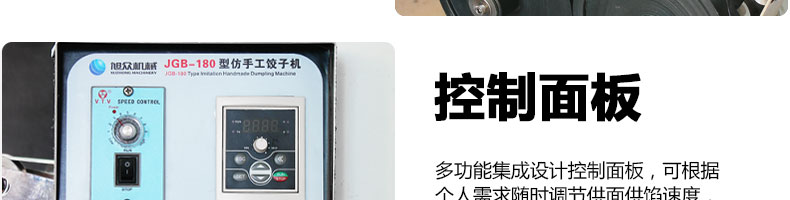 JGB-180餃子機,先進的自動餃子生產(chǎn)設(shè)備,包括主動壓皮部分、自動供餡部分、自動包合部分、自動成品輸送部分,并且只要更換模具,就可制鍋貼等食品。適合食品速凍廠、飯店、廠礦學(xué)校食堂等制作包餡面制品單位使用。