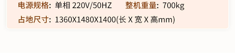 名稱JGB-10型一體式餃子機 電源單相220V/50HZ 功率4.7kW 產(chǎn)量生產(chǎn)速度:40-60個/分 尺寸1360X1480X1400長X寬X高mm) 重量700kg 規(guī)格氣源規(guī)格:0.4Mp;10L/分 其他