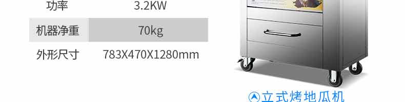 名稱臺式地瓜機(jī) 電源220V 功率2.0KW,3.2KW 產(chǎn)量 尺寸620*500*680mm,783*470*1280mm 重量41KG,70KG 規(guī)格 其他