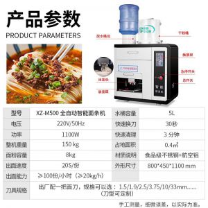 全自動(dòng)商用快速出面電動(dòng)素面濕面M500臺(tái)式制面機(jī)器,20秒全自動(dòng)出面,全程無(wú)需看管。一鍵出面,面做好,自動(dòng)停。均勻滴漏加水系統(tǒng),水面比例把握更好。自動(dòng)滴漏加水系統(tǒng),運(yùn)作過(guò)程加水更均勻,適量控水,面條更有嚼勁。
