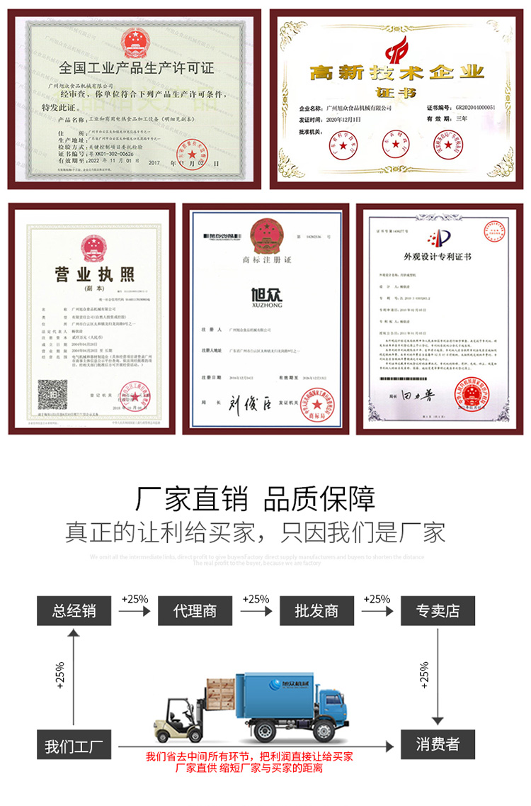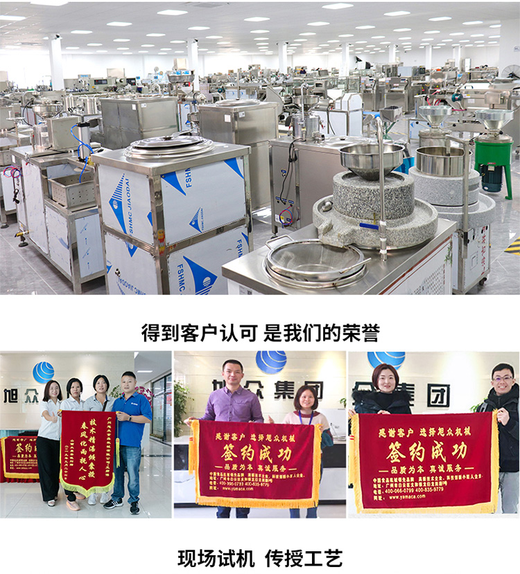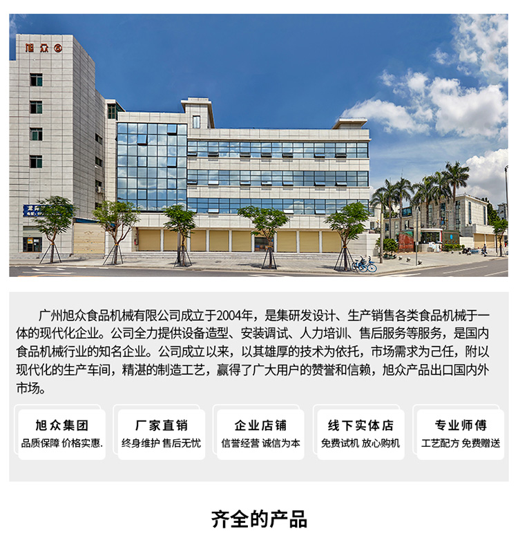 廣州旭眾食品機(jī)械有限公司是一家集科研開(kāi)發(fā),生產(chǎn)設(shè)計(jì),營(yíng)銷(xiāo)服務(wù)為一體的現(xiàn)代化生產(chǎn)企業(yè)?,F(xiàn)代化生產(chǎn)車(chē)間,精湛制造技術(shù),所產(chǎn)機(jī)械歷經(jīng)市場(chǎng)重重考驗(yàn),不斷贏得海內(nèi)外客戶(hù)的贊譽(yù)。
