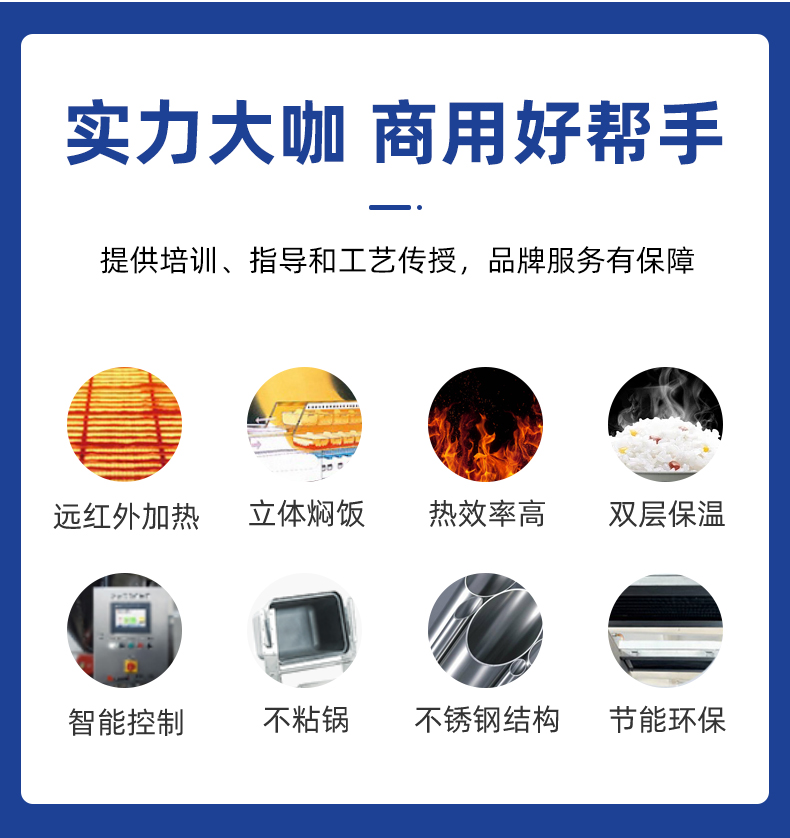 機械手全自動米飯生產(chǎn)線,實力大咖 商用好幫手,提供培訓(xùn)、指導(dǎo)和工藝傳授,品牌服務(wù)有保障。遠紅外加熱、智能控制、立體燜飯、不粘鍋、熱效率高、不銹鋼結(jié)構(gòu)、雙層保溫、節(jié)能環(huán)保。