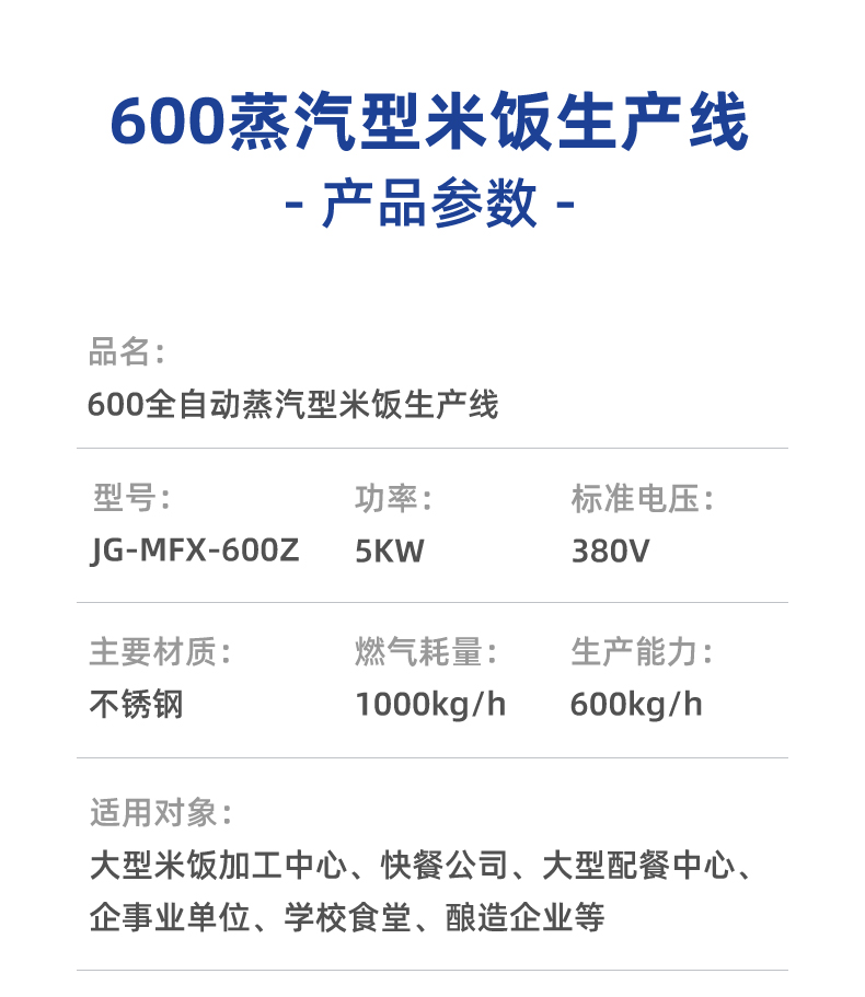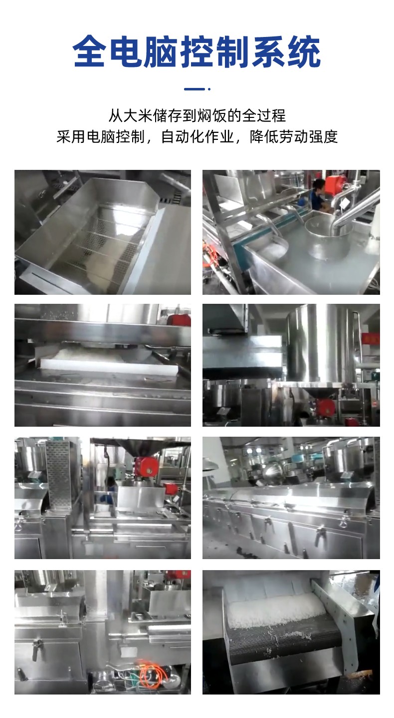 全自動蒸汽型米飯生產(chǎn)線,全電腦控制系統(tǒng),從大米儲存到燜飯的全過程采用電腦控制,自動化作業(yè),降低勞動強(qiáng)度。實(shí)現(xiàn)全自動生產(chǎn),多功能,一機(jī)多用,可以用于在蒸制各種食物實(shí)現(xiàn)全自動生產(chǎn),無需人工服務(wù)。