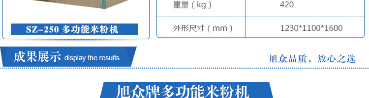 名稱SZ-250多功能米粉機(jī) 電源380V 功率15kw 產(chǎn)量230-250kg/h 尺寸1230*1100*1600mm 重量420kg 規(guī)格 其他