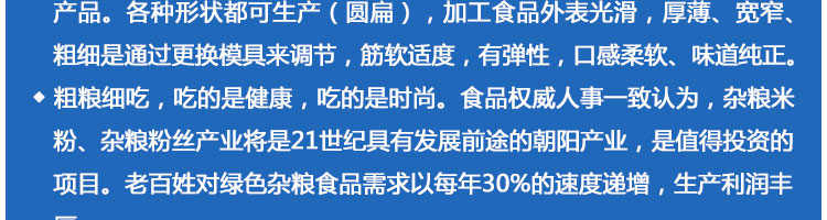 SZ-350多功能米粉機,生產多樣性可生產米粉、米線、粉絲、粉條、、年糕、玉米面條、各種雜糧粉絲、各種面條、雜糧面條、彩色面條以及以紅薯、玉米、大豆、蠶豆等制成淀粉為原料的等多種食品而且每種食品厚薄、粗細等規(guī)格可根據需要任意調整。