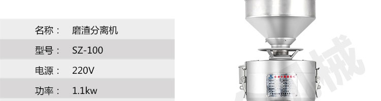 SZ-100-磨渣分離機系列,適用于把豆制品磨碎分離漿和渣;適用于豆制品廠、飲食服務業(yè)、食堂、飯店及個體商戶使用。