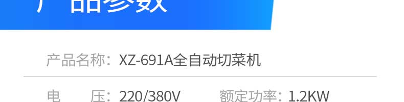 名稱(chēng)XZ-691A切菜機(jī) 電源220/380v 功率1.2kw 產(chǎn)量600-1600kg/h 尺寸1030*530*980mm 重量160kg 規(guī)格 其他