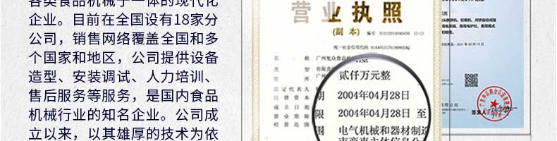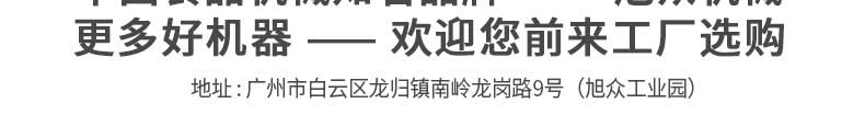 廣州旭眾食品機(jī)械有限公司是一家集科研開(kāi)發(fā),生產(chǎn)設(shè)計(jì),營(yíng)銷(xiāo)服務(wù)為一體的現(xiàn)代化生產(chǎn)企業(yè)?,F(xiàn)代化生產(chǎn)車(chē)間,精湛制造技術(shù),所產(chǎn)機(jī)械歷經(jīng)市場(chǎng)重重考驗(yàn),不斷贏得海內(nèi)外客戶(hù)的贊譽(yù)。