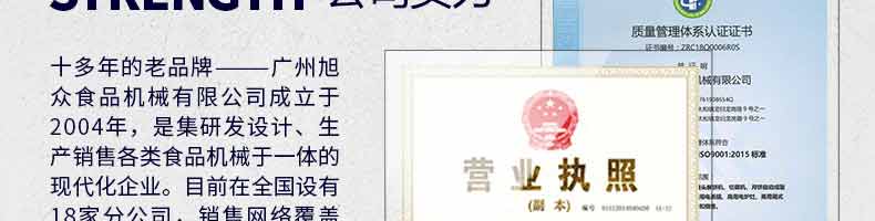 廣州旭眾食品機(jī)械有限公司是一家集科研開發(fā),生產(chǎn)設(shè)計(jì),營(yíng)銷服務(wù)為一體的現(xiàn)代化生產(chǎn)企業(yè)?,F(xiàn)代化生產(chǎn)車間,精湛制造技術(shù),所產(chǎn)機(jī)械歷經(jīng)市場(chǎng)重重考驗(yàn),不斷贏得海內(nèi)外客戶的贊譽(yù)。