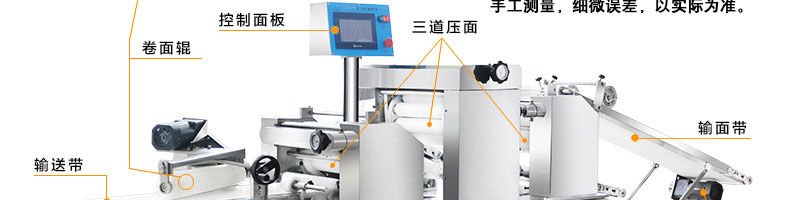名稱xz-15c三道搟面酥餅機(jī) 電源220/380V(見機(jī)器名牌) 功率3kw 產(chǎn)量0-5000個(gè)/小時(shí) 尺寸主機(jī)尺寸3300*725*1520mm,成型機(jī)尺寸1550*800*820mm,出餡機(jī)尺寸870*4 重量410+110+170kg 規(guī)格10-150克/個(gè) 其他