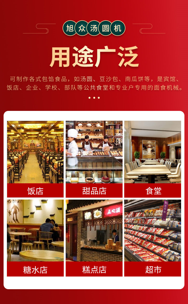 4000C湯圓機,多功能湯圓機,運行穩(wěn)定、時產(chǎn)量高、大小可調(diào)。制品多樣性生產(chǎn)各種大小規(guī)格不同的有餡湯圓,無餡湯圓、豆沙包、南瓜餅,芝麻球,地瓜丸,香芋丸,葉兒粑,青團,粘豆包等。