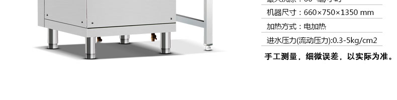 名稱XZ-60洗碗機-揭蓋式洗碗機 電源380V 功率11kw 產(chǎn)量 尺寸主機規(guī)格700*800*1500mm 重量 規(guī)格 其他最大洗滌高度400mm,洗滌量1000pcs/h,板材:全部304板材,1.2mm厚,標配3個籃子