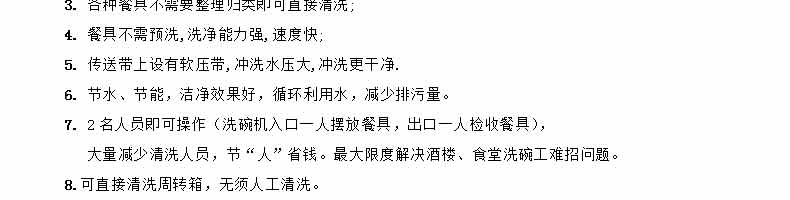 名稱6200洗碗機(jī) 電源380V 功率51kW 產(chǎn)量請下拉查看參數(shù) 尺寸6200×850×1630mm 重量 規(guī)格 其他