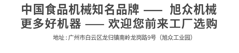 廣州旭眾食品機(jī)械有限公司是一家集科研開發(fā),生產(chǎn)設(shè)計(jì),營(yíng)銷服務(wù)為一體的現(xiàn)代化生產(chǎn)企業(yè)?,F(xiàn)代化生產(chǎn)車間,精湛制造技術(shù),所產(chǎn)機(jī)械歷經(jīng)市場(chǎng)重重考驗(yàn),不斷贏得海內(nèi)外客戶的贊譽(yù)。