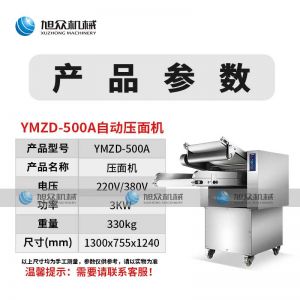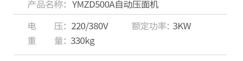 名稱(chēng)500A壓面機(jī)主圖 電源220/380v 功率3kw 產(chǎn)量 尺寸1300*755*1240mm 重量330kg 規(guī)格 其他