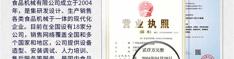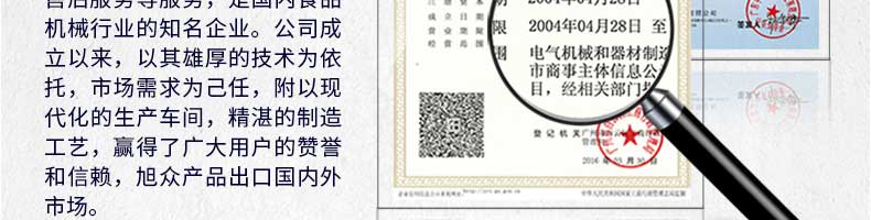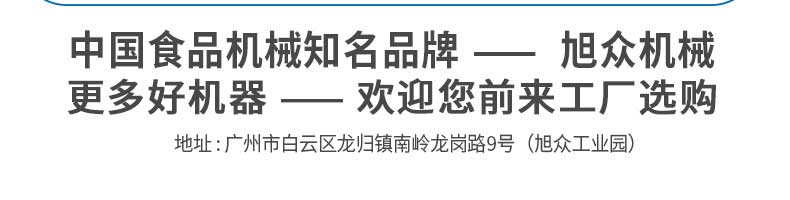 廣州旭眾食品機(jī)械有限公司是一家集科研開(kāi)發(fā),生產(chǎn)設(shè)計(jì),營(yíng)銷(xiāo)服務(wù)為一體的現(xiàn)代化生產(chǎn)企業(yè)?,F(xiàn)代化生產(chǎn)車(chē)間,精湛制造技術(shù),所產(chǎn)機(jī)械歷經(jīng)市場(chǎng)重重考驗(yàn),不斷贏得海內(nèi)外客戶(hù)的贊譽(yù)。