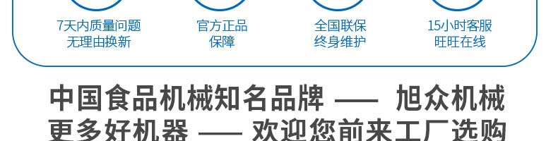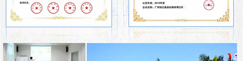 廣州旭眾食品機械有限公司是一家集科研開發(fā),生產設計,營銷服務為一體的現(xiàn)代化生產企業(yè)?,F(xiàn)代化生產車間,精湛制造技術,所產機械歷經市場重重考驗,不斷贏得海內外客戶的贊譽。