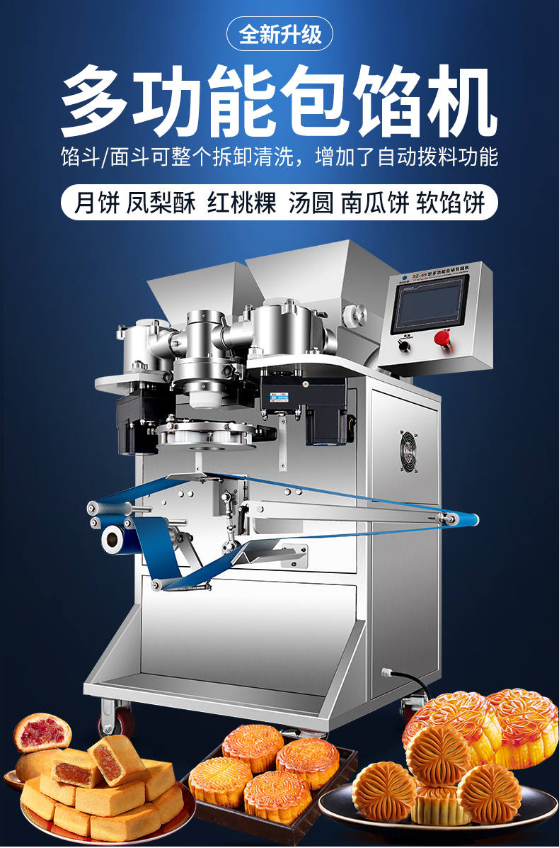 SZ-69型多功能自動包餡機(jī),餡斗/面斗,可整個拆卸清洗,增加了自動拔料功能。月餅鳳梨酥紅桃裸湯圓南瓜餅軟餡餅。在嚴(yán)把質(zhì)量關(guān)的同時,產(chǎn)品的關(guān)鍵部件都選自國內(nèi)優(yōu)秀企業(yè)。只有不斷的提高產(chǎn)品的質(zhì)量,才能使客戶從中獲益,而客戶的成功最終也就是我們的成功。