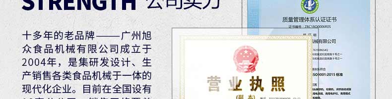 廣州旭眾食品機(jī)械有限公司是一家集科研開發(fā),生產(chǎn)設(shè)計,營銷服務(wù)為一體的現(xiàn)代化生產(chǎn)企業(yè)?,F(xiàn)代化生產(chǎn)車間,精湛制造技術(shù),所產(chǎn)機(jī)械歷經(jīng)市場重重考驗(yàn),不斷贏得海內(nèi)外客戶的贊譽(yù)。