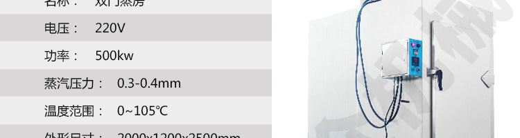 名稱大型蒸汽蒸柜(蒸包子的機器)-雙門 電源220v 功率500kw 產(chǎn)量 尺寸2000*1200*2500mm 重量 規(guī)格 其他