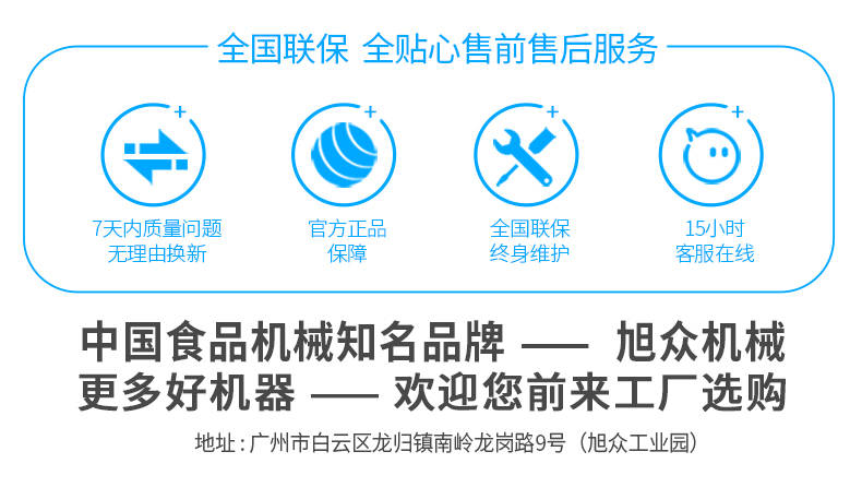 廣州旭眾食品機(jī)械有限公司是一家集科研開發(fā),生產(chǎn)設(shè)計,營銷服務(wù)為一體的現(xiàn)代化生產(chǎn)企業(yè)?,F(xiàn)代化生產(chǎn)車間,精湛制造技術(shù),所產(chǎn)機(jī)械歷經(jīng)市場重重考驗(yàn),不斷贏得海內(nèi)外客戶的贊譽(yù)。