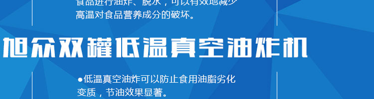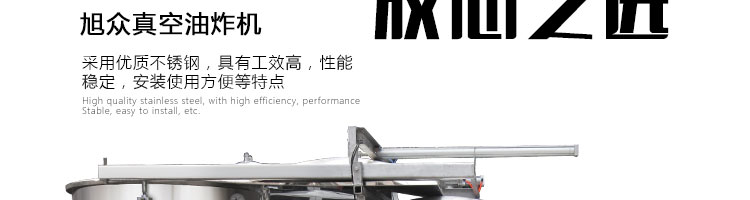 作者:旭眾機(jī)械發(fā)布時間:2017-04-15 11:42查看數(shù):您當(dāng)前的位置:首頁>>產(chǎn)品展示>>油炸機(jī)和榨油機(jī)系列>>真空油炸機(jī)